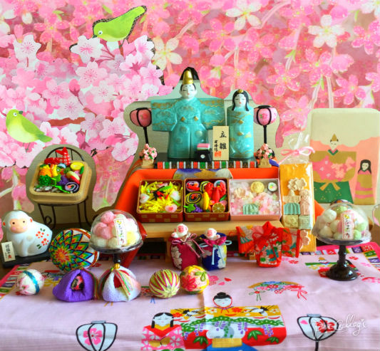 桃の節句の飾りつけ。