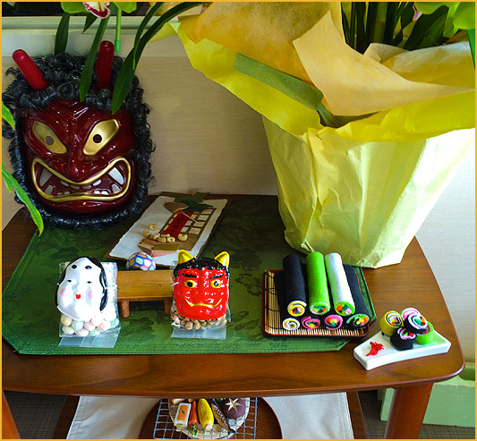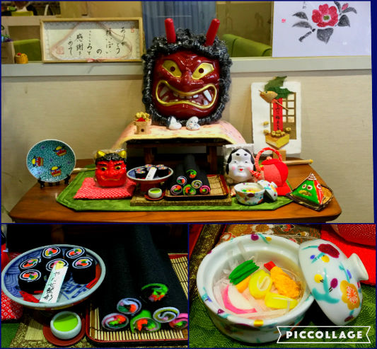 節分の飾りつけ。豆まきで鬼をおいはらいましょう('◇')ゞ