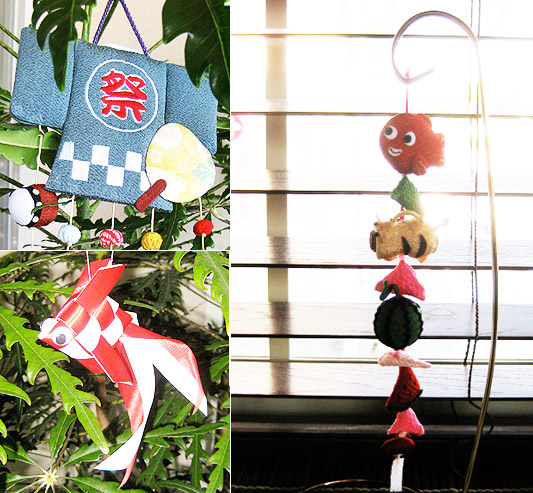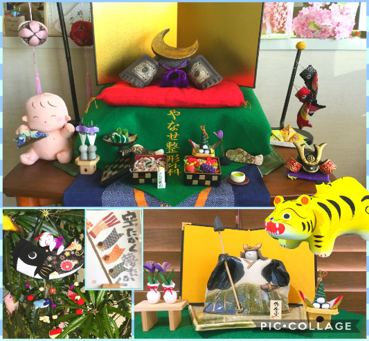 五月の節句の飾りつけです。かわいく味のある手作りのオブジェが見る人の心を和ませます。